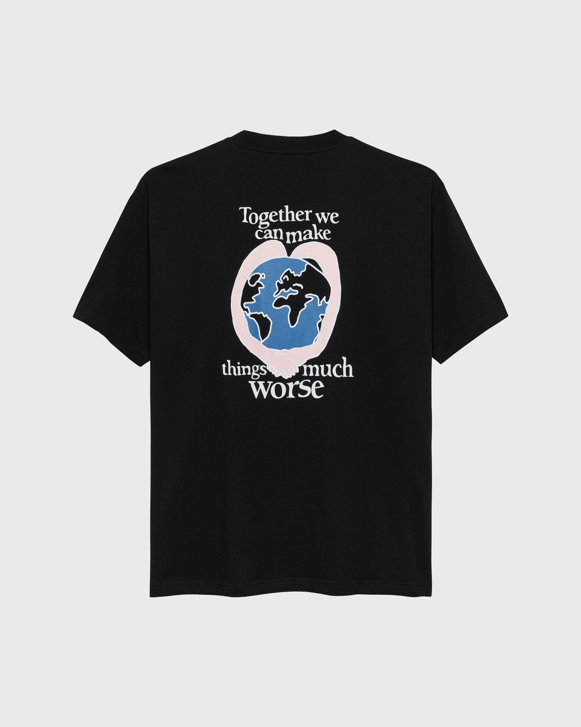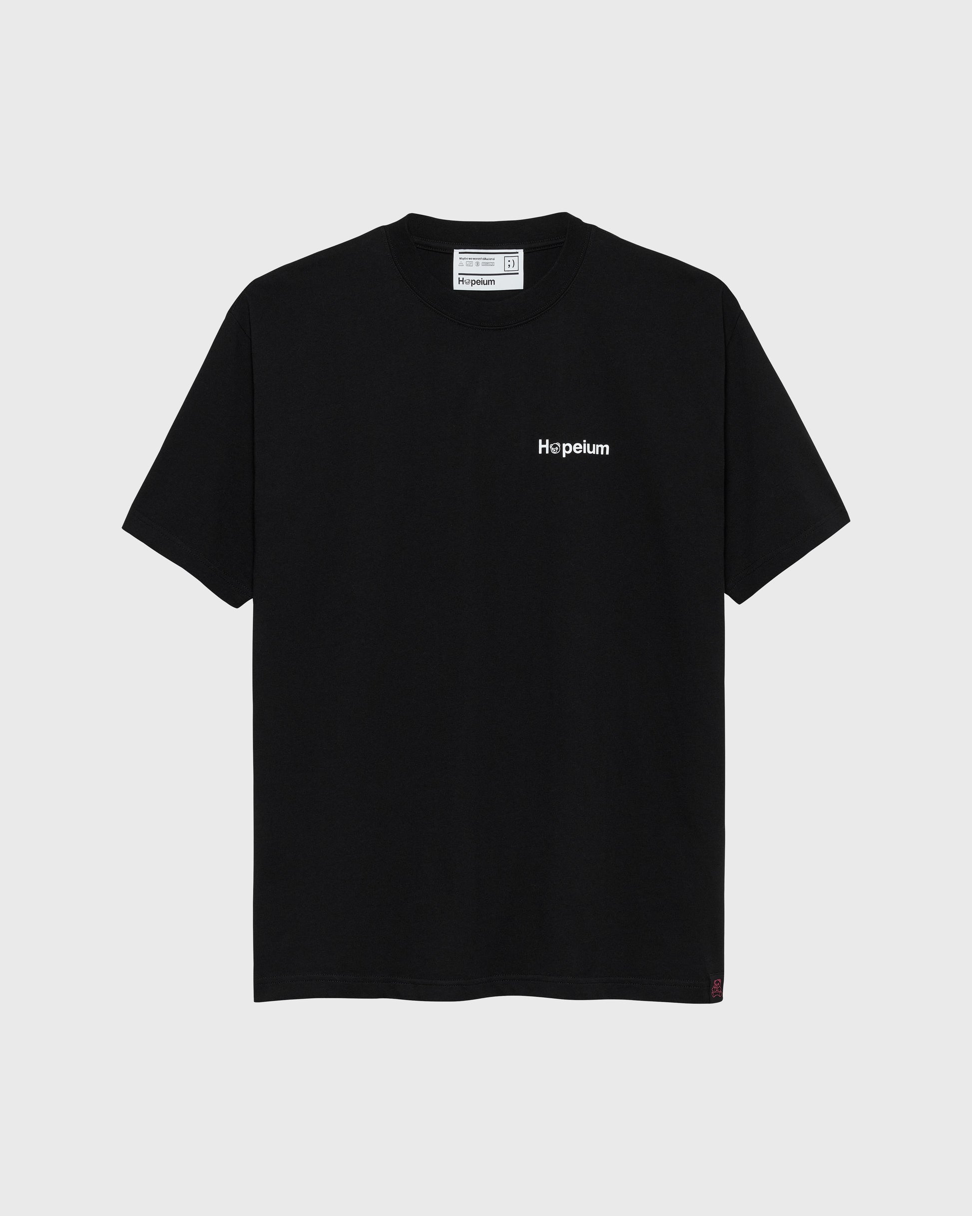 Together Print T-Shirt black with blue/ pink globe print in the back and a white Hopeium name print in the front.