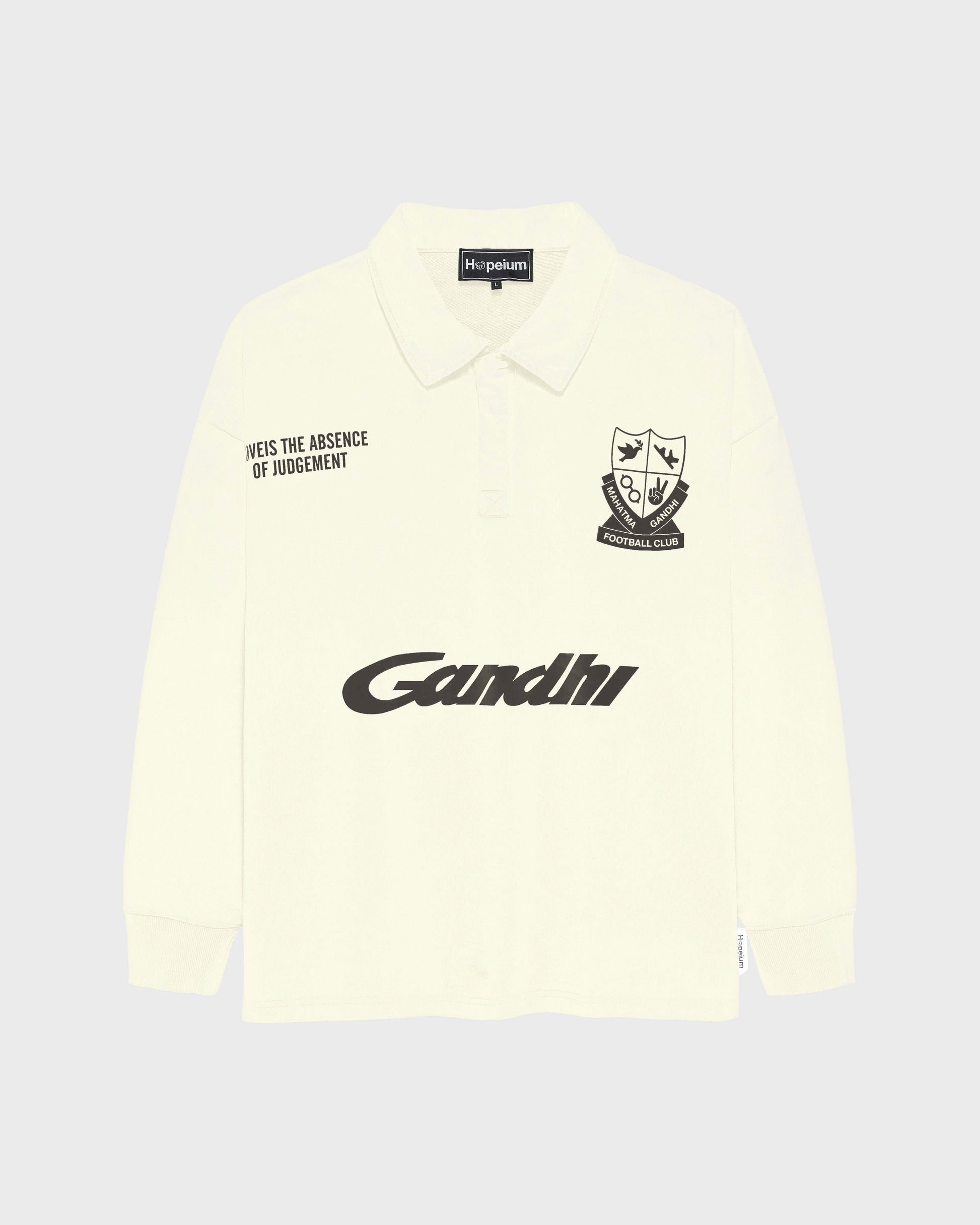 Black Ghandi print on the front and number 8 (infinity) on the back.
