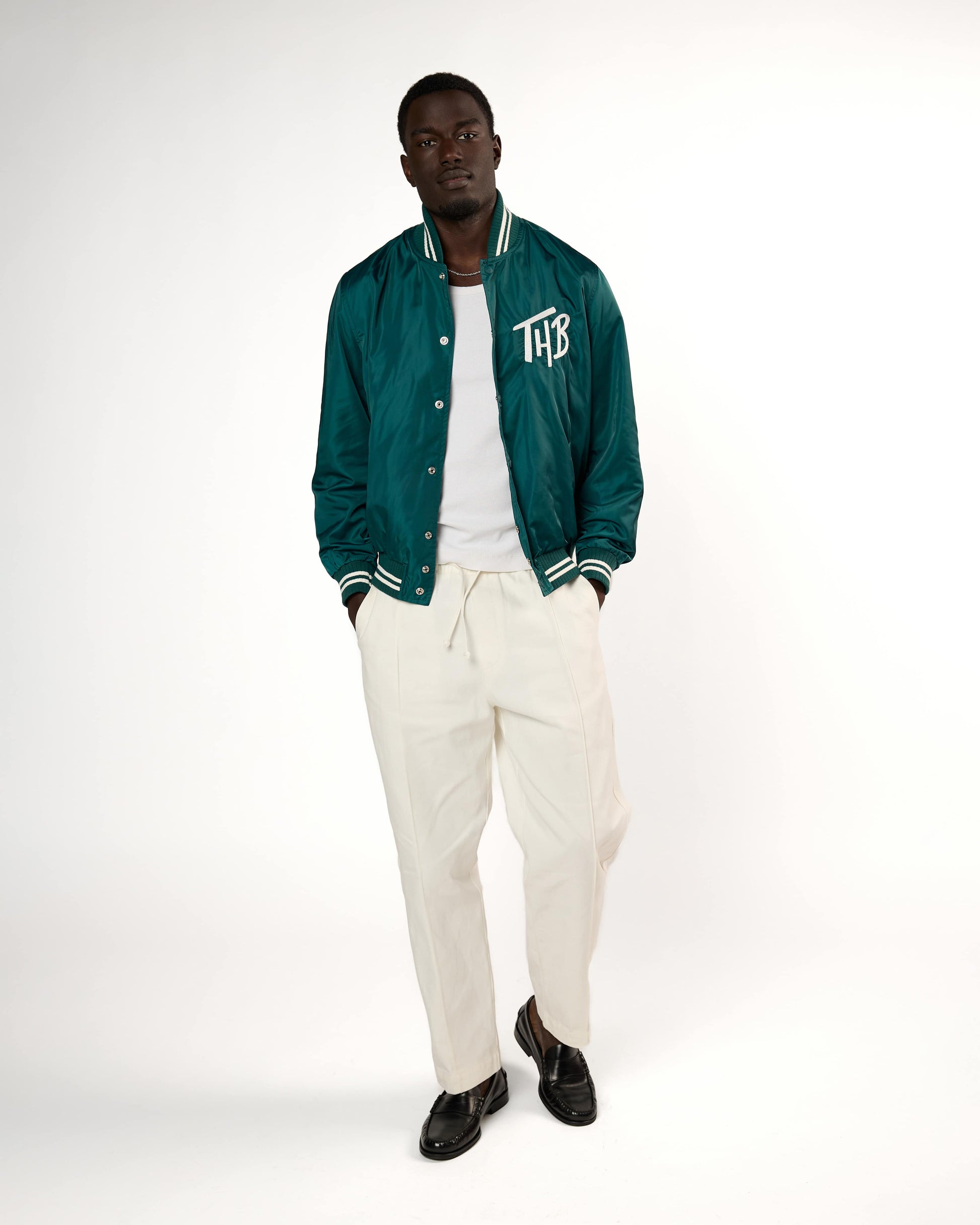 SATIN HEAVILY BILLS JACKET IN GREEN